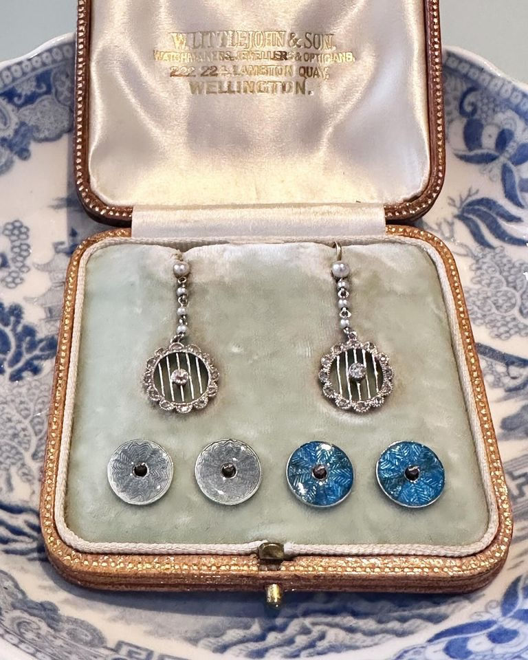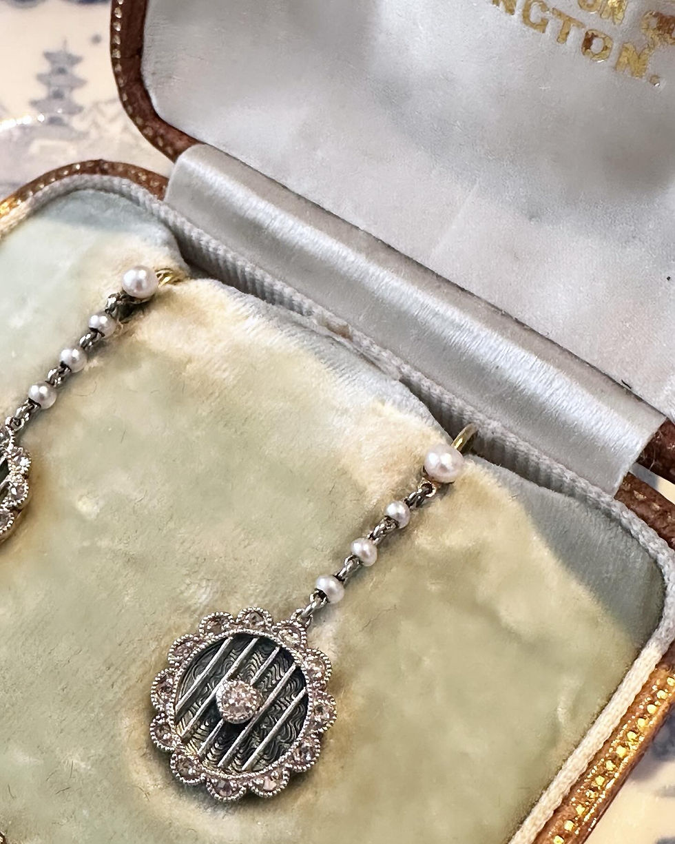 Rare Boxed Edwardian Pearl and Diamond Earrings