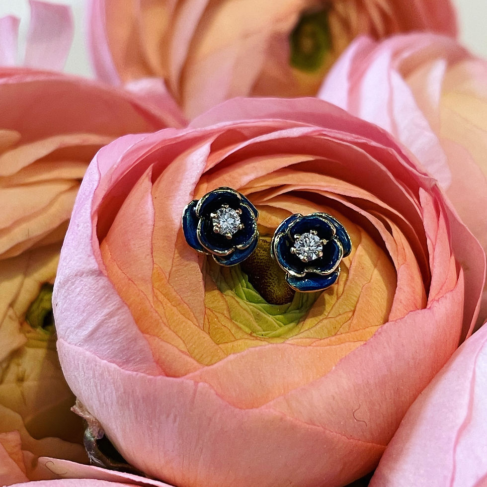 Pretty enamel and diamond flower bud earrings